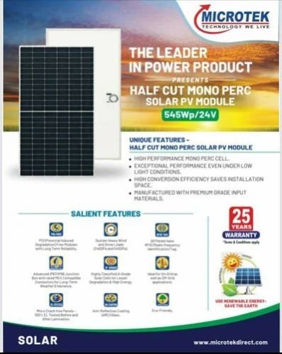 Microtek 's 535w bi-facial mono perc solar panel is a high-efficiency photovoltaic module designed for both residential and commercial solar installations. Leveraging advanced technology, this panel offers enhanced energy generation, especially in environments with reflective surfaces.